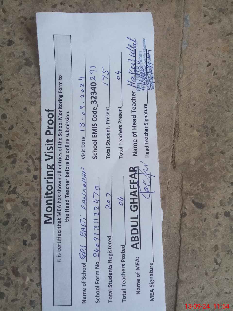 | EMIS Code: 32340291 | Name of School: GPS BASTI PANOOHAN | |||