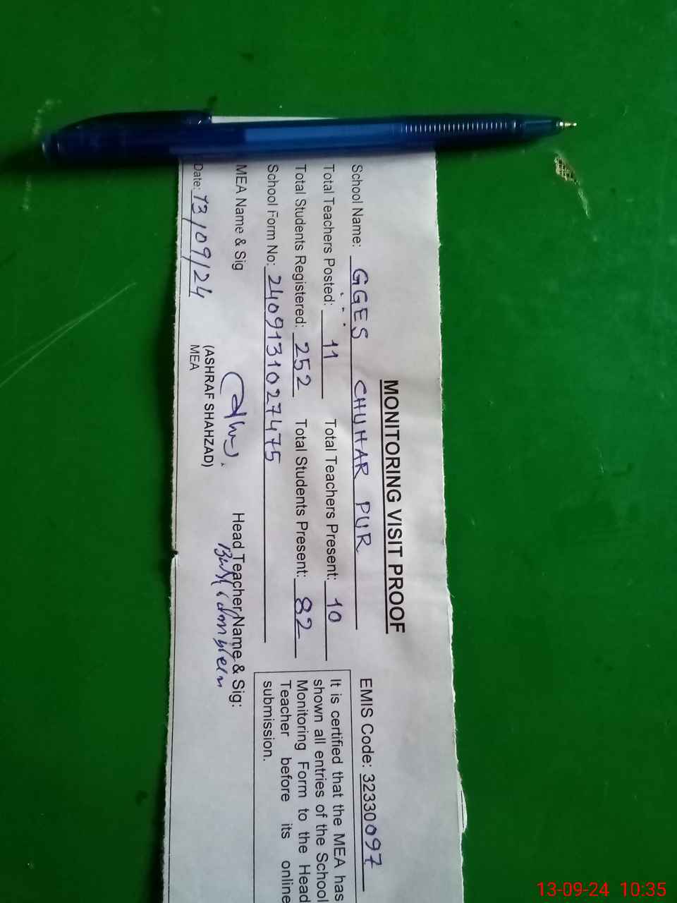| EMIS Code: 32330097 | Name of School: GGES CHOHAR PUR | |||