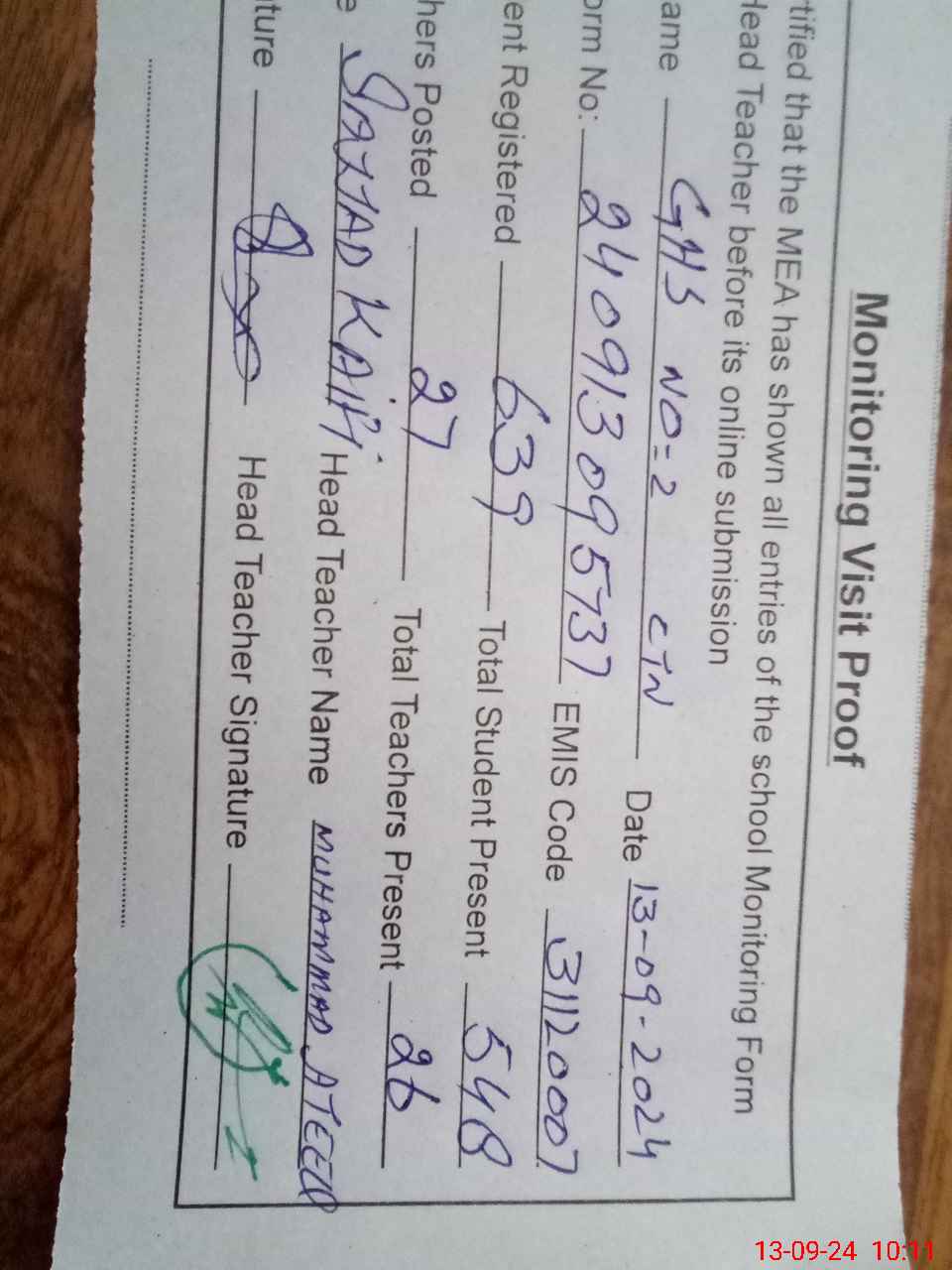 | EMIS Code: 31120007 | Name of School: GHS NO. 2 CHISHTIAN | |||