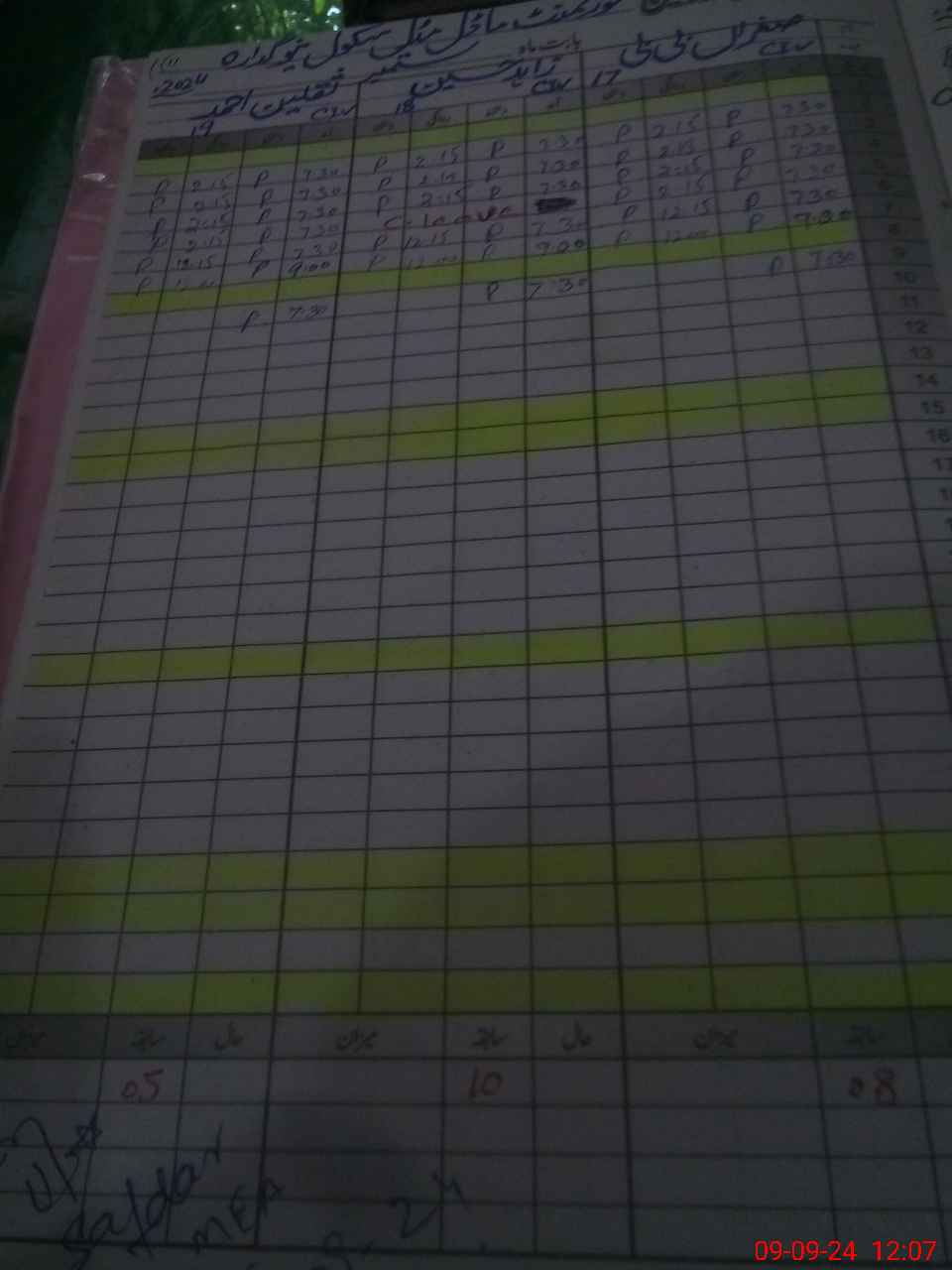 | CNIC | Full Name | Designation | R/C | Absence during last cal. month |