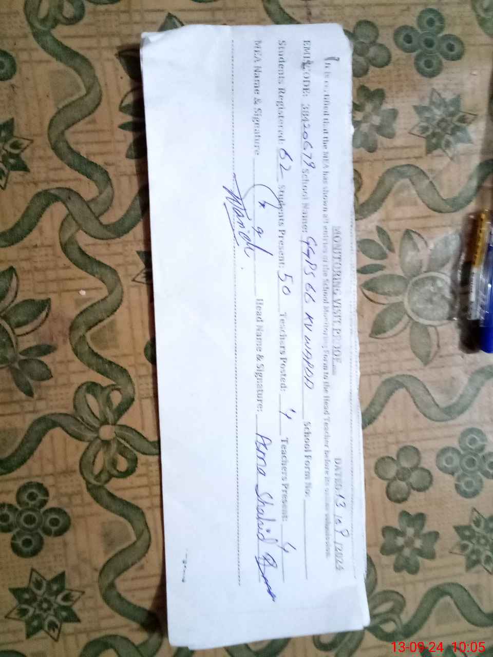 | Attendance Register | Head Teacher | MEA with School | Visit Proof |