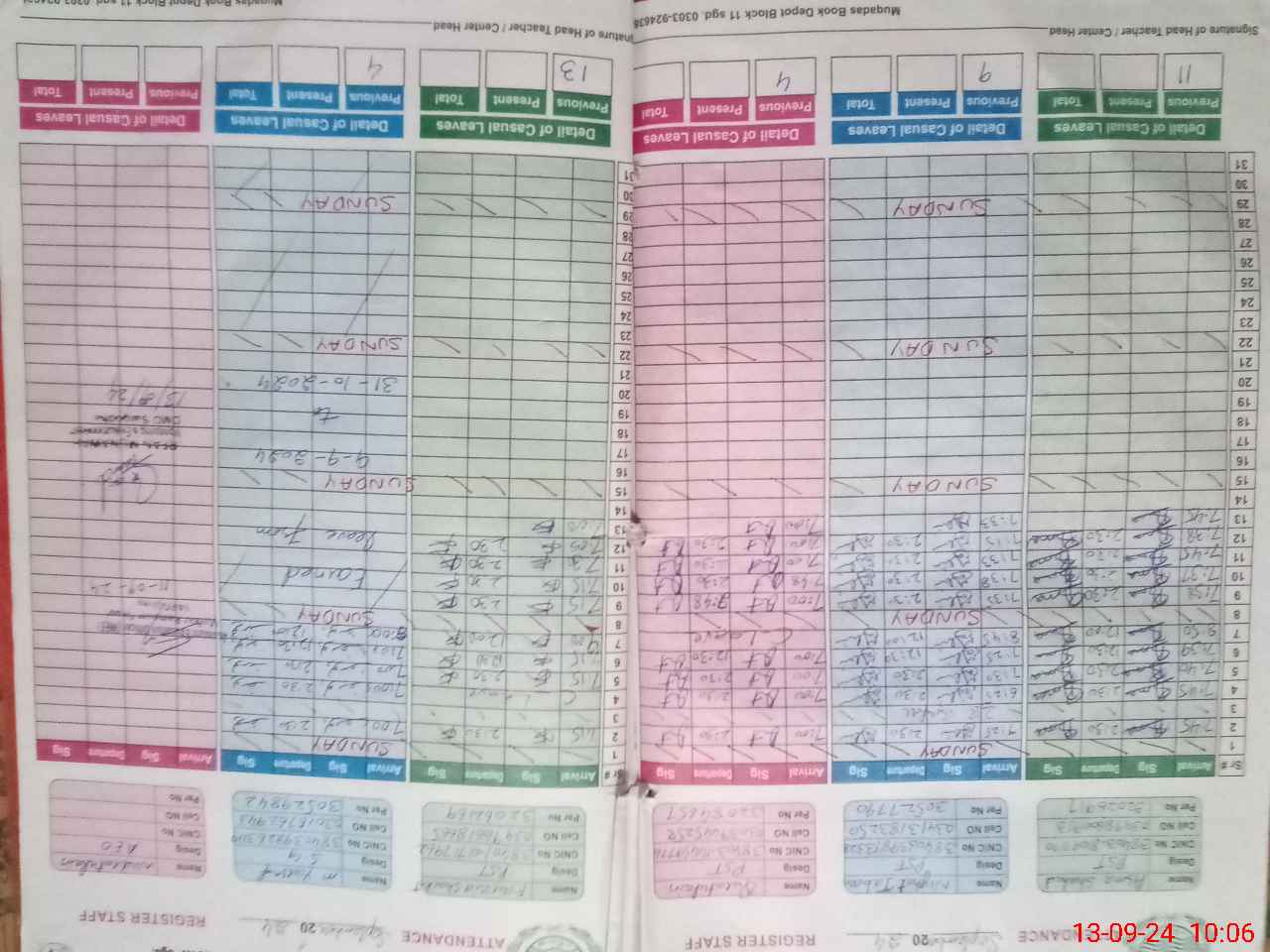 | CNIC | Full Name | Designation | R/C | Absence during last cal. month |