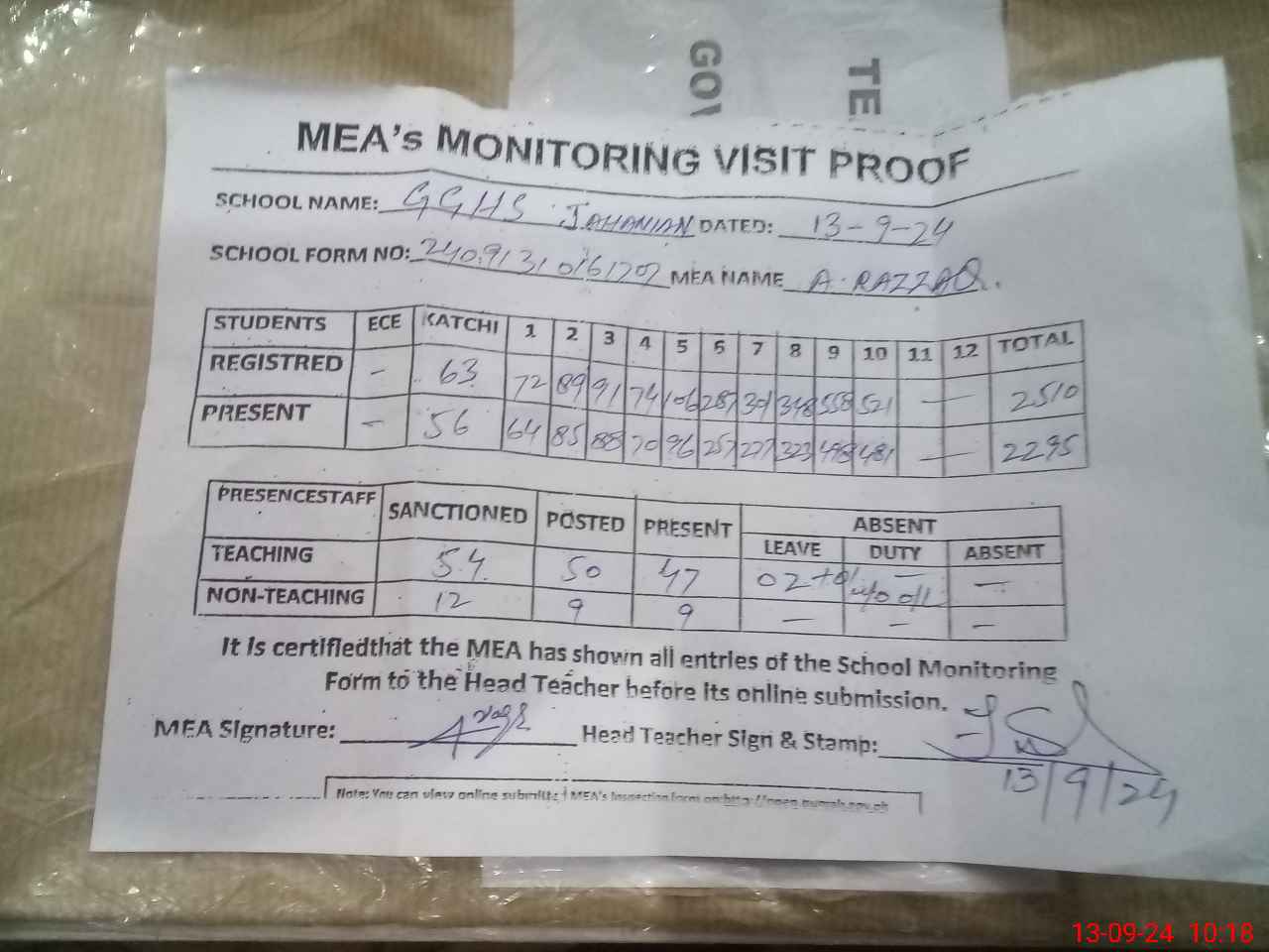 | EMIS Code: 36440055 | Name of School: GGHS JAHANIAN, JAHANIAN | |||