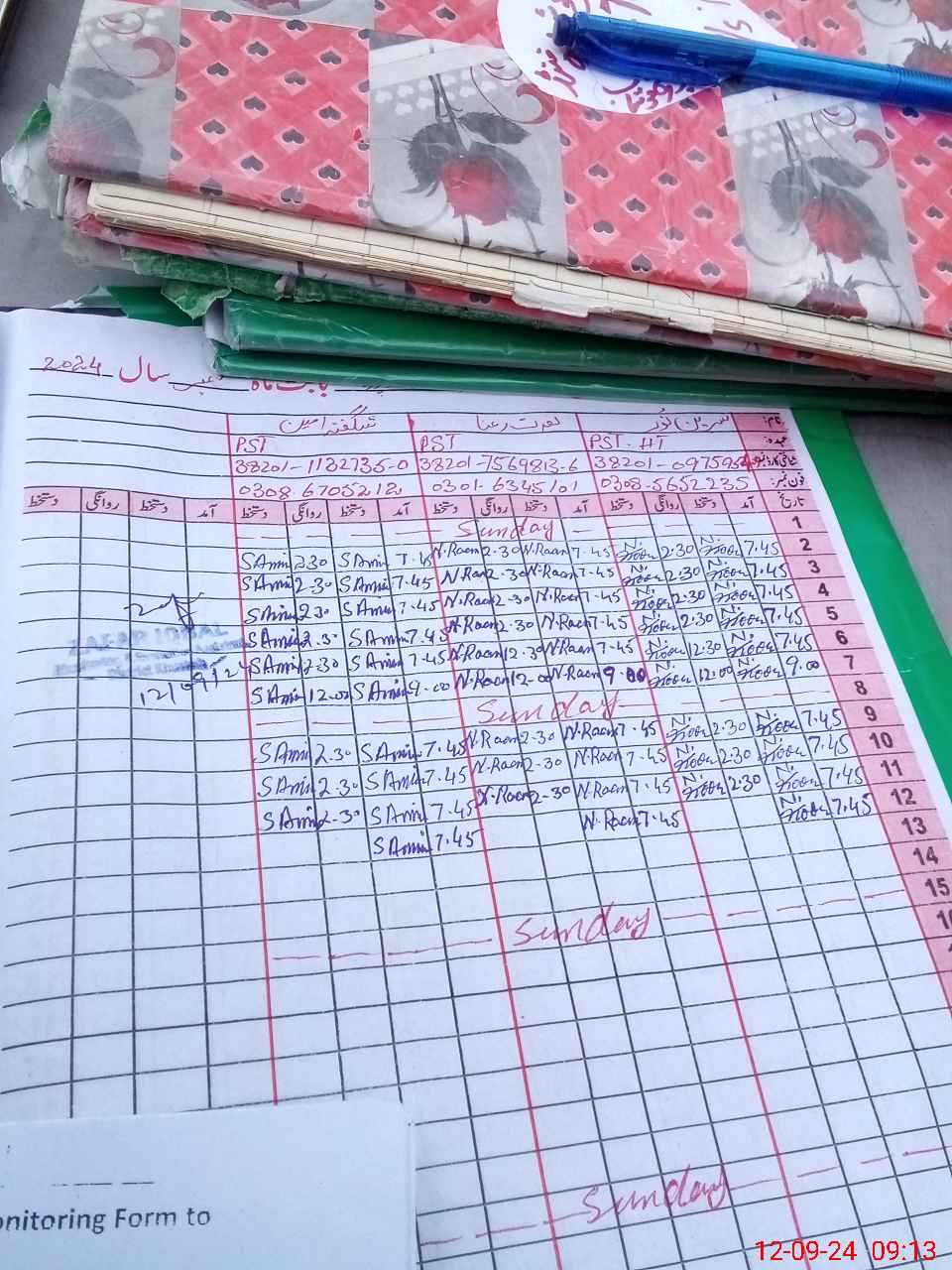 | Monitoring Date: 12-09-2024 | Start Time: 12-09-2024 08:55 AM | End Time: 12-09-2024 09:31 AM | Name of MEA: ZA**** IQ**** | |