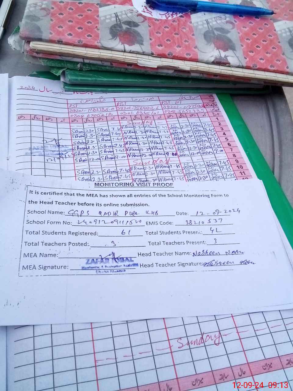 | EMIS Code: 38210537 | Name of School: GGPS QADIR PURA KHUSHAB | |||