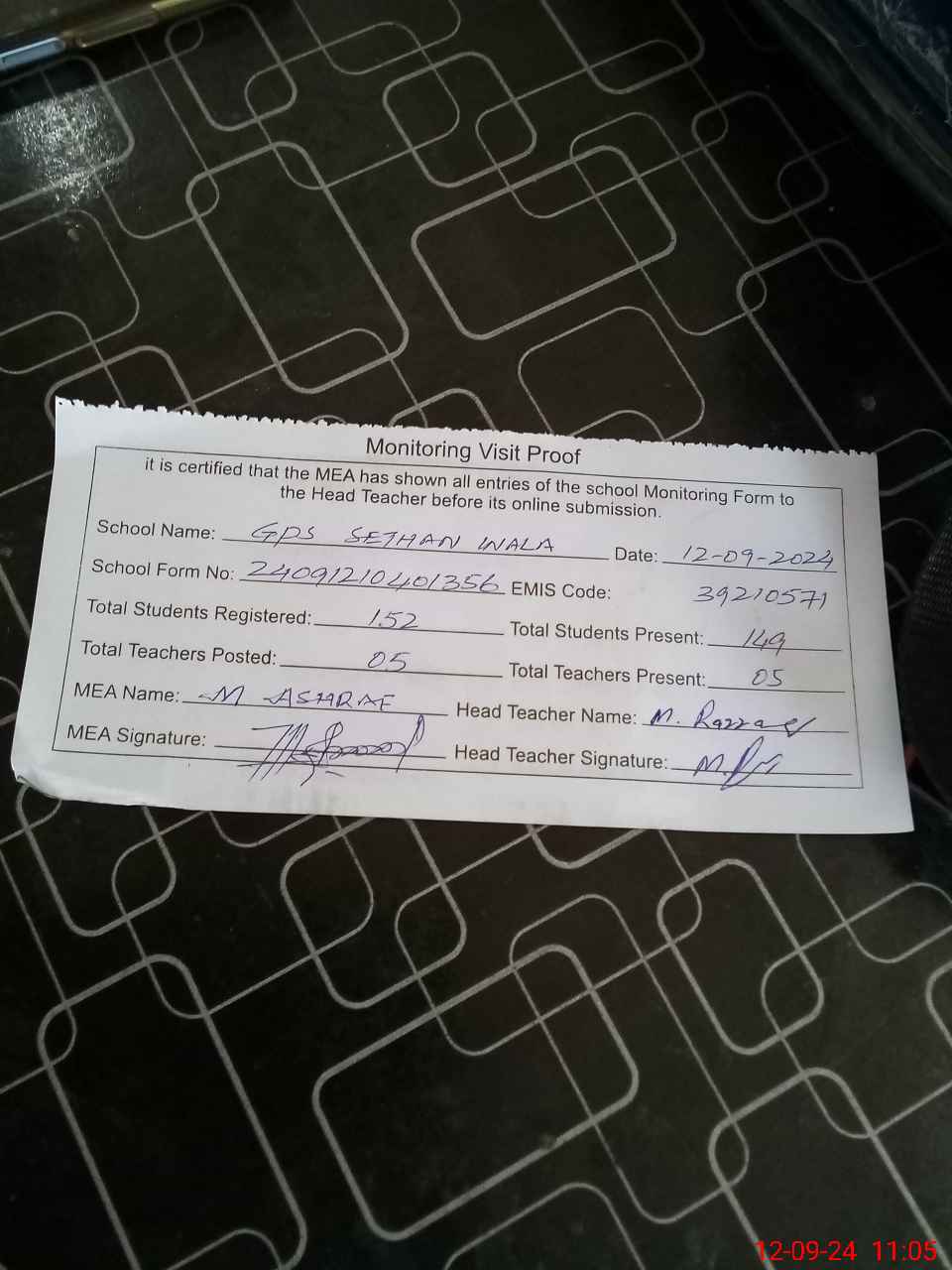 | EMIS Code: 39210571 | Name of School: GPS SETHAN WALA | |||