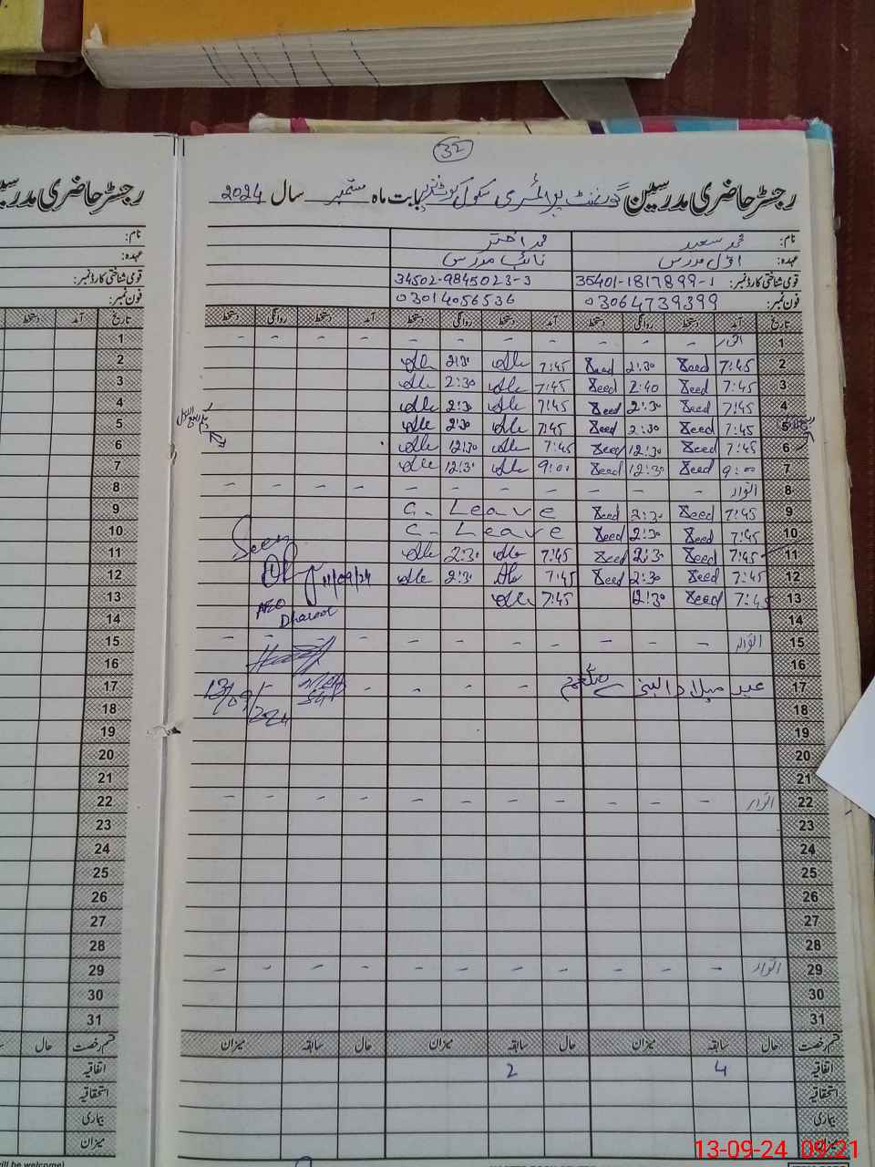 | Name: MU**** AK**** Designation: (School Headmaster's/Headmistress's) PST Phone/Cell Number: 03**** |