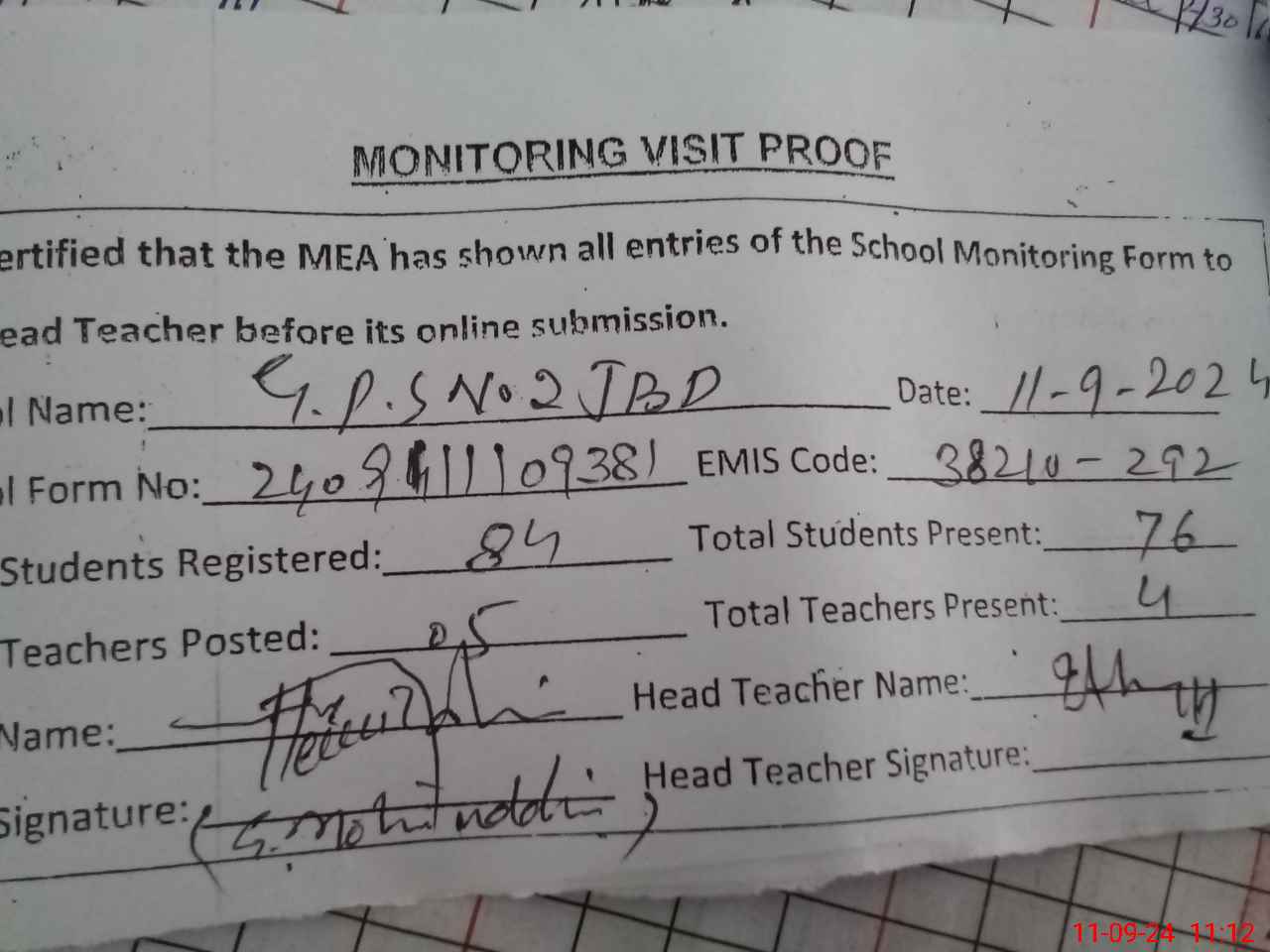 | EMIS Code: 38210292 | Name of School: GPS NO. 2 JAUHARABAD | |||