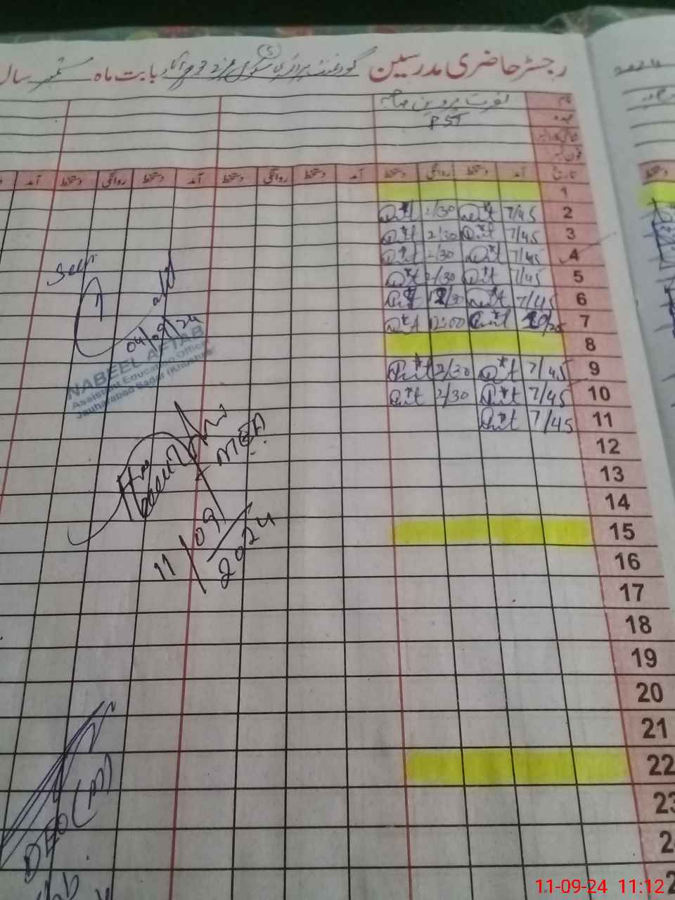 | CNIC | Full Name | Designation | R/C | Absence During Last Calender Month |