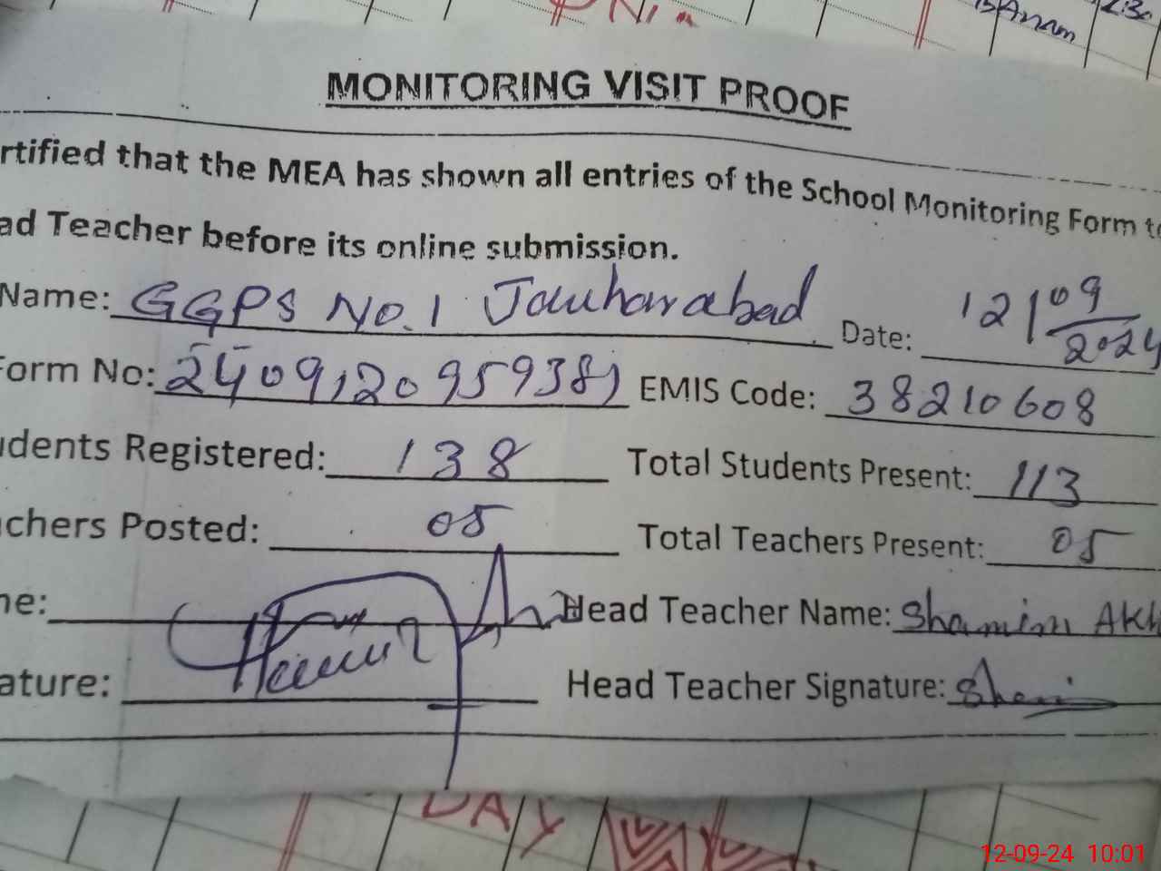| EMIS Code: 38210608 | Name of School: GGPS NO. 1 JAUHARABAD | |||