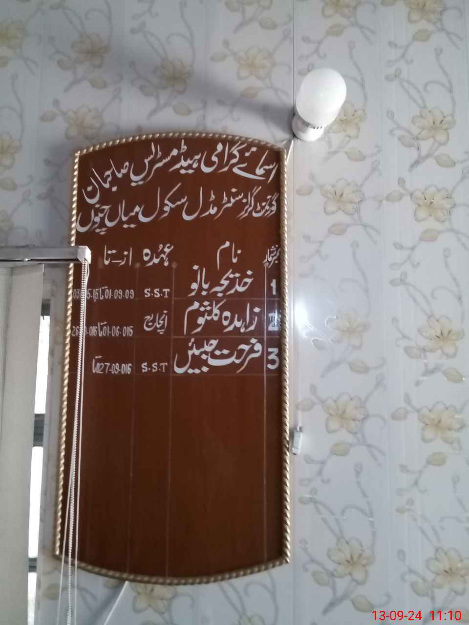 | Name: FA**** JA**** Designation: (School Headmaster's/Headmistress's) SST ( GENERAL) Phone/Cell Number: 03**** |