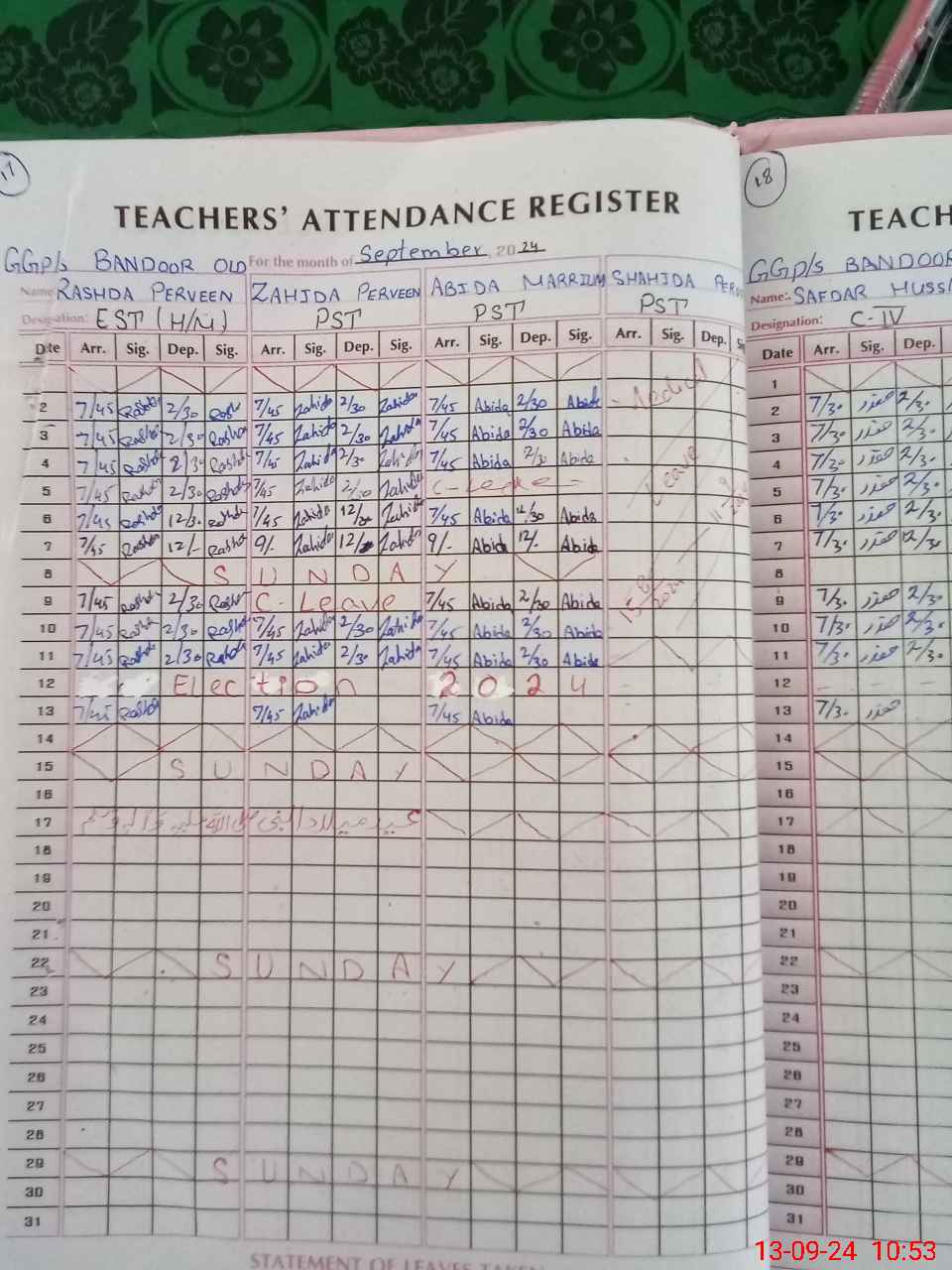 | CNIC | Full Name | Designation | R/C | Absence During Last Calender Month |