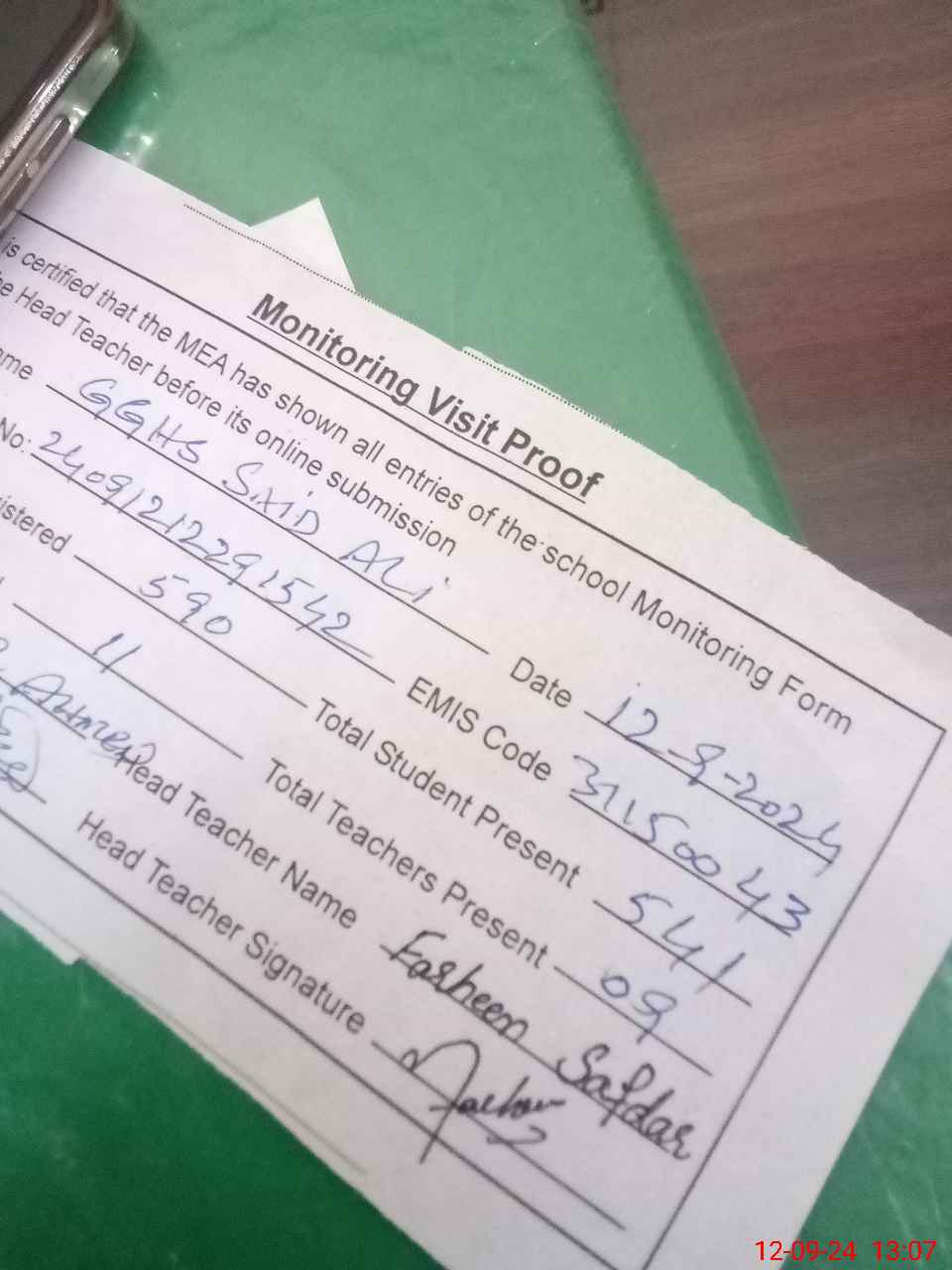 | EMIS Code: 31150043 | Name of School: GGHS SAID ALI | |||