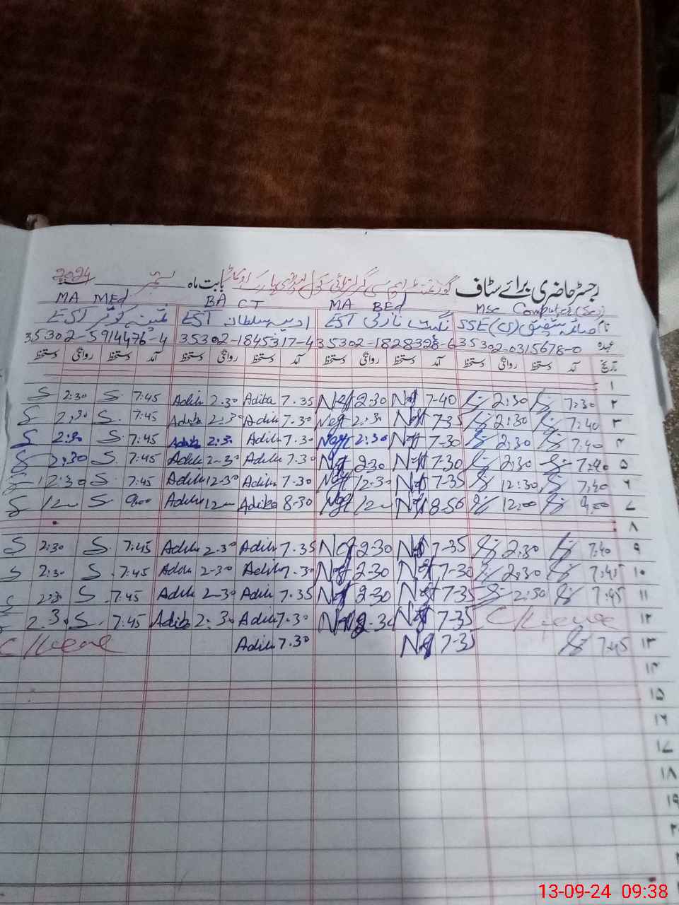 | Name: Sa**** An**** Designation: (School Headmaster's/Headmistress's) Princepale Phone/Cell Number: 03**** |