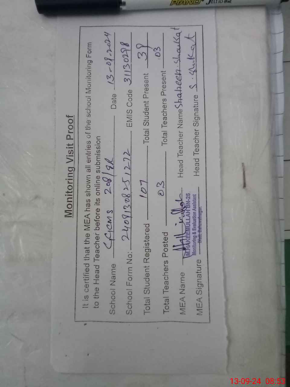 | Certified that this School was Inspected by the Undersigned MEA/DMO Today and the Information Stated Above is as Per Record. | |||||