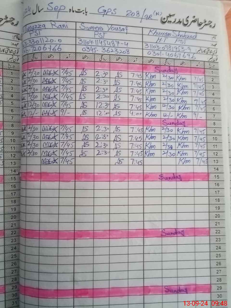 | CNIC | Full Name | Designation | R/C | Absence During Last Calender Month |