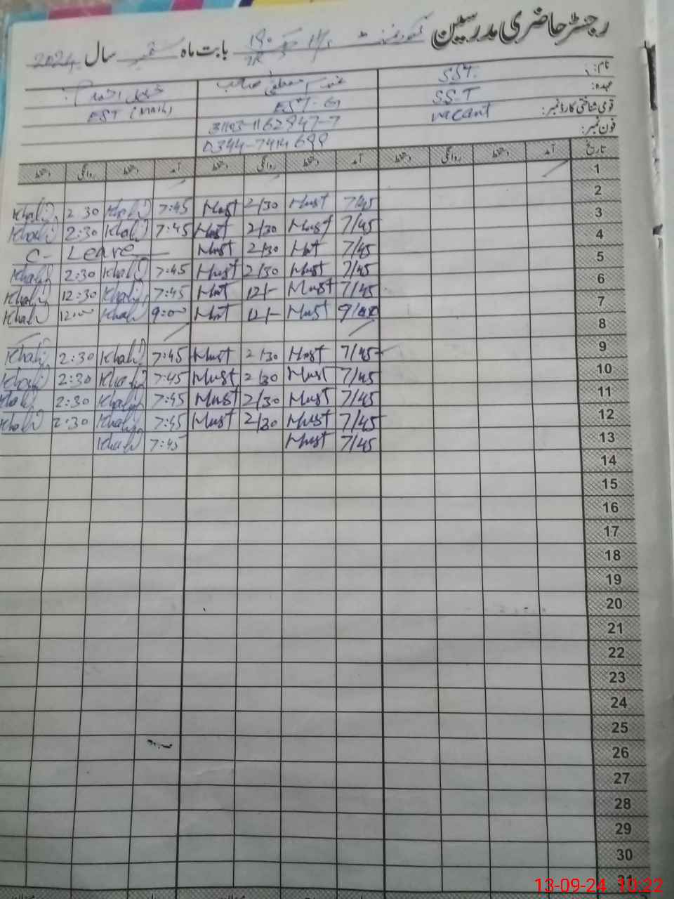 | Name: Gh**** Mu**** Designation: (School Headmaster's/Headmistress's) EST G Phone/Cell Number: 03**** |