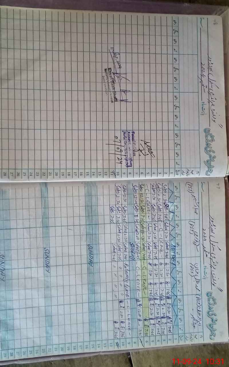 | CNIC | Full Name | Designation | R/C | Absence During Last Calender Month |