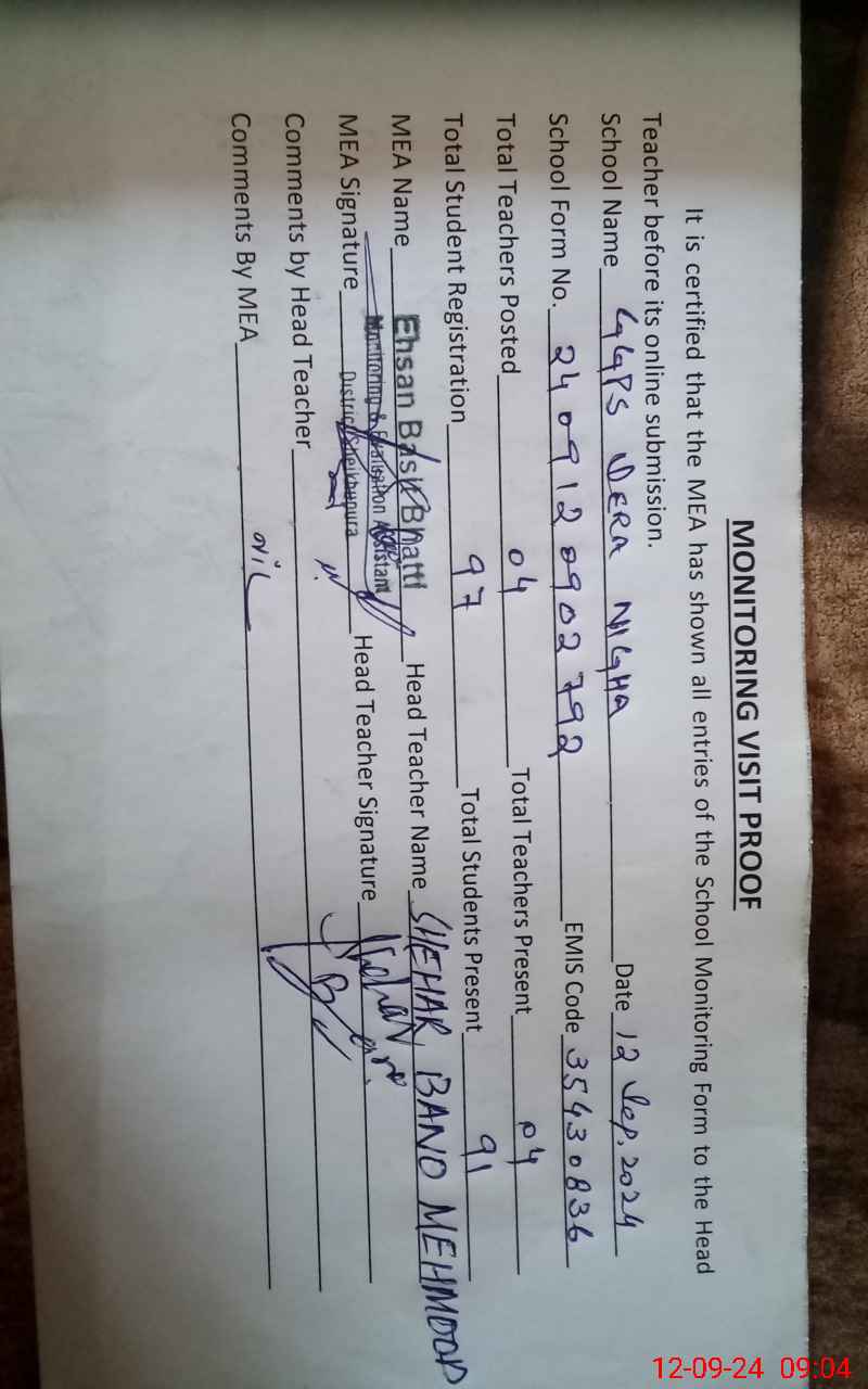 | EMIS Code: 35430836 | Name of School: GGPS DERA NIGHA | |||