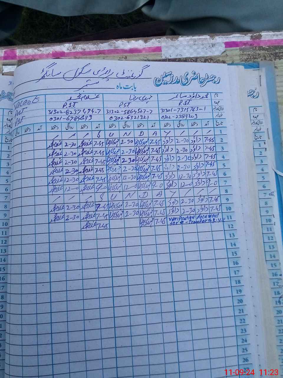 | Name: ME**** RA**** Designation: (School Headmaster's/Headmistress's) PST Phone/Cell Number: 03**** |