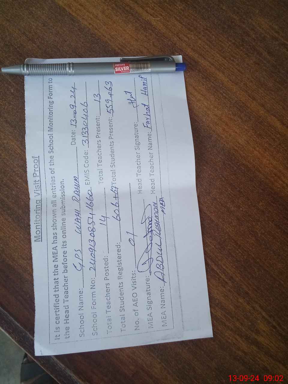 | EMIS Code: 31330406 | Name of School: GPS WAHI RAHIM | |||