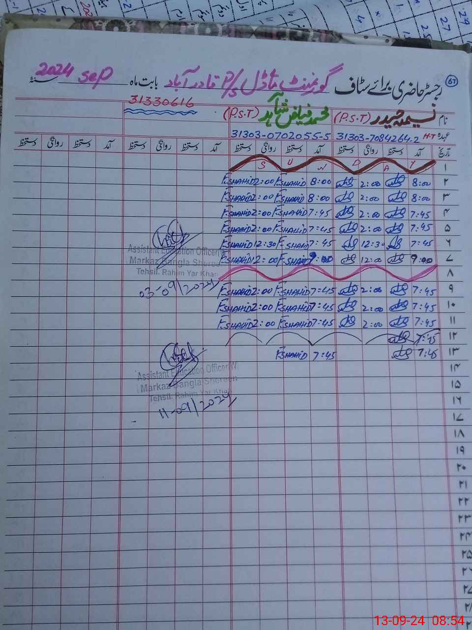 | Name: NA**** HA**** Designation: (School Headmaster's/Headmistress's) PST/PTC/JV Phone/Cell Number: 03**** |