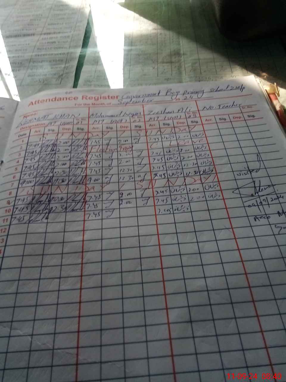 | Monitoring Date: 11-09-2024 | Start Time: 11-09-2024 08:37 AM | End Time: 11-09-2024 09:20 AM | Name of MEA: Mu**** Ak**** Ba**** | |