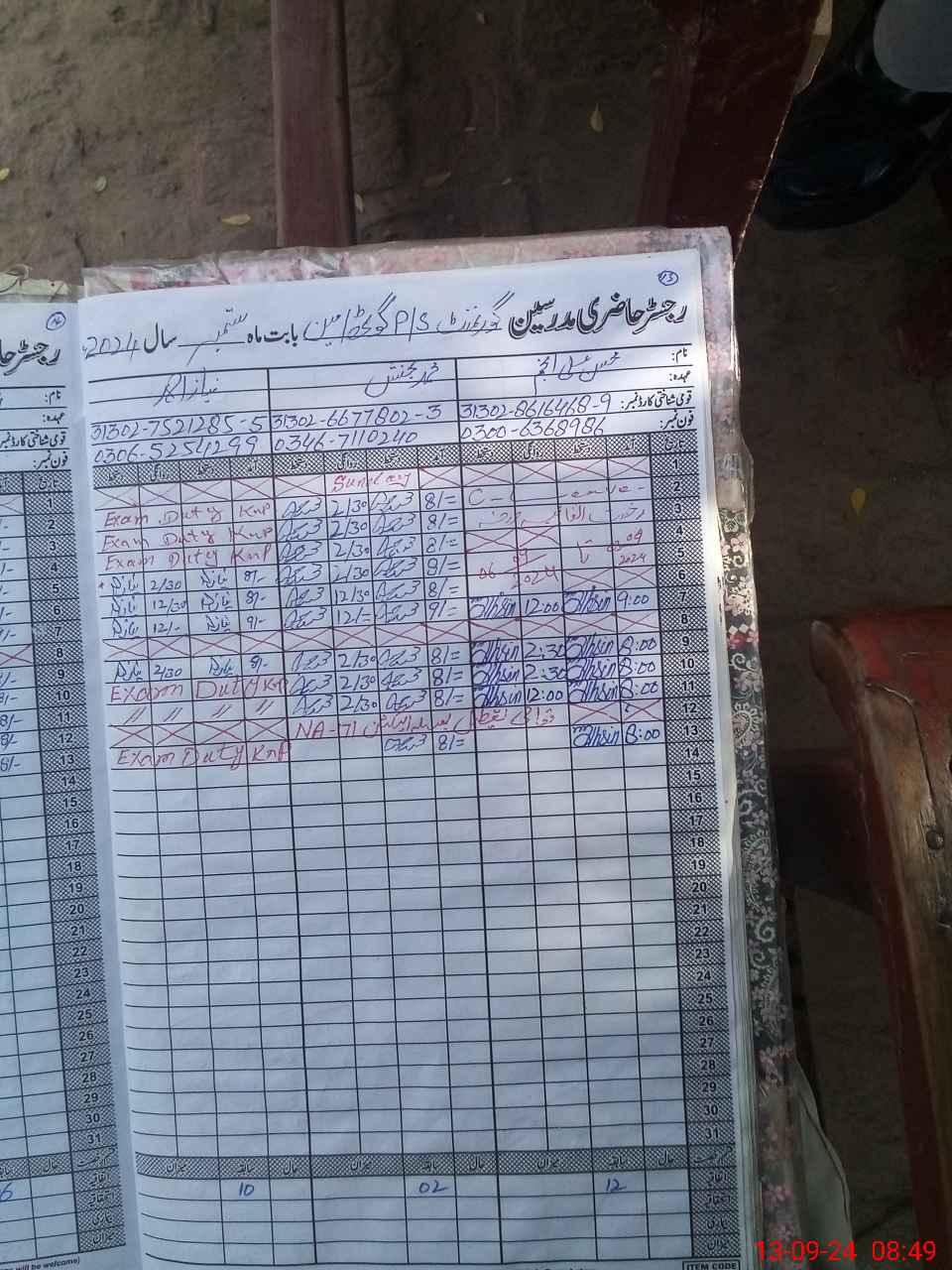 | Name: MU**** BU**** Designation: (School Headmaster's/Headmistress's) OT Phone/Cell Number: 03**** |
