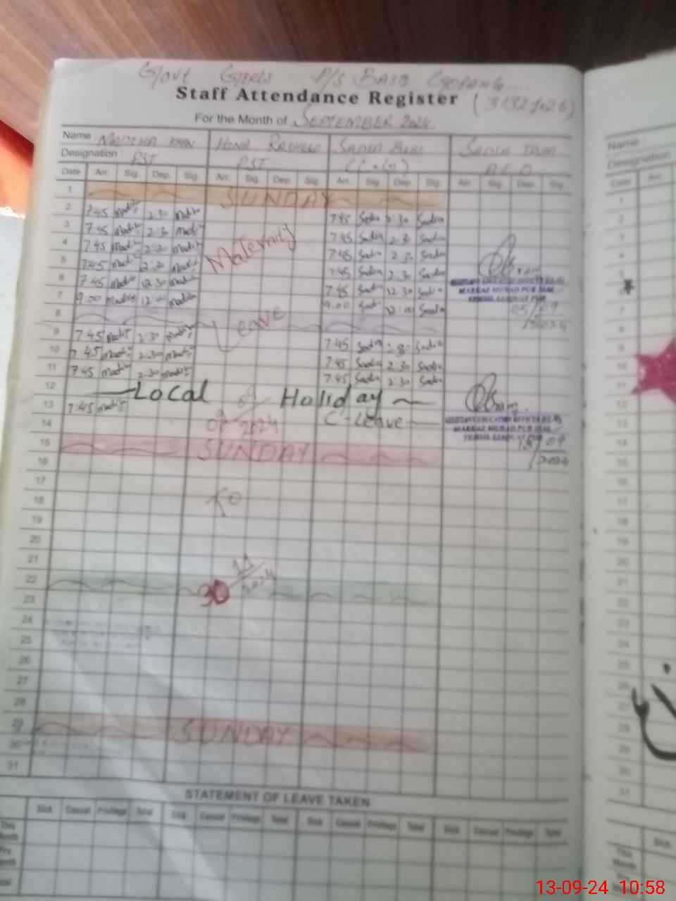 | Leave | Duty | Absent | Maternity | Medical | Ex- Pak |