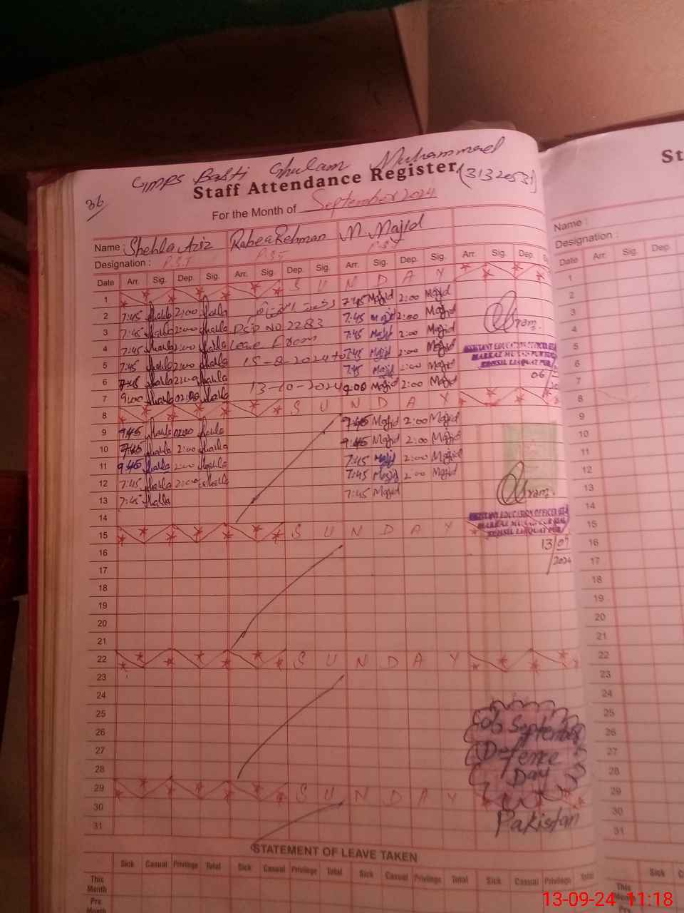 | Name: Sh**** Az**** Designation: (School Headmaster's/Headmistress's) PST Phone/Cell Number: 03**** |