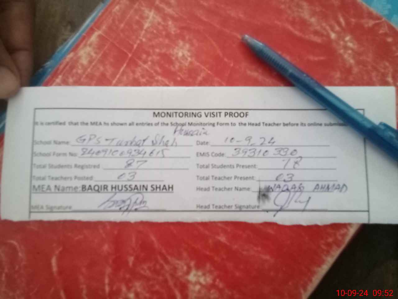 | EMIS Code: 39310330 | Name of School: GPS TURBAT SHAH HUSSAIN | |||