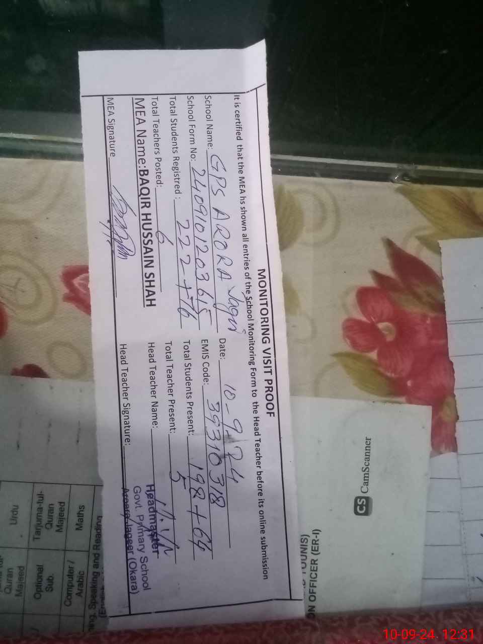 | EMIS Code: 39310318 | Name of School: GPS ARORA JAGIR | |||