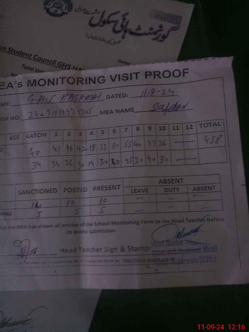 | EMIS Code: 36410057 | Name of School: GHS HASHMAT MIRALI, SARAI SIDHU | |||