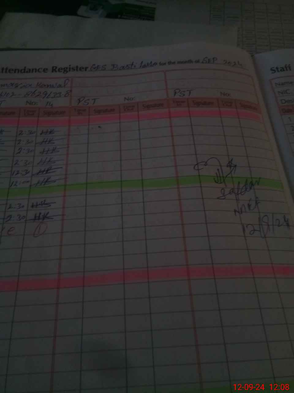 | Name: IR**** NA**** Designation: (School Headmaster's/Headmistress's) EST Phone/Cell Number: 03**** |