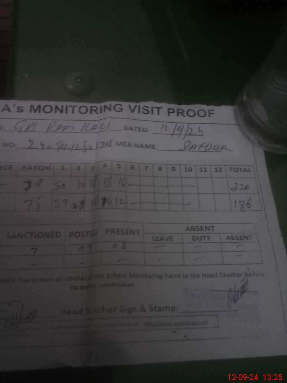 | Attendance Register | Head Teacher | MEA with School | Visit Proof |