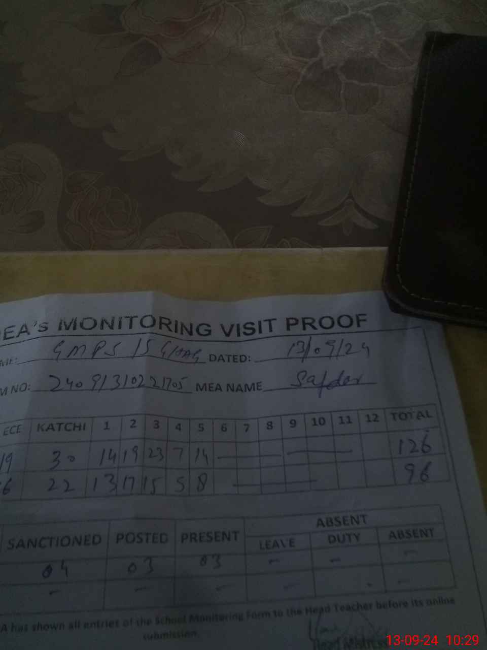| Attendance Register | Head Teacher | MEA with School | Visit Proof |