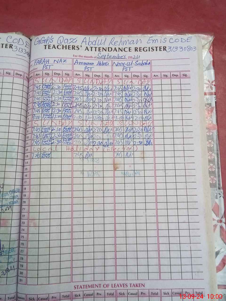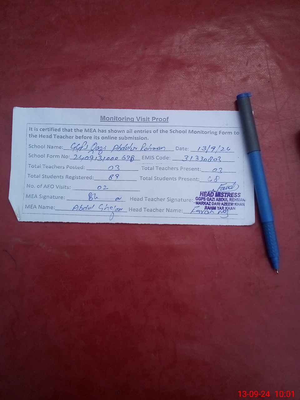 | EMIS Code: 31330803 | Name of School: GGPS QAZI ABADUR REHMAN | |||