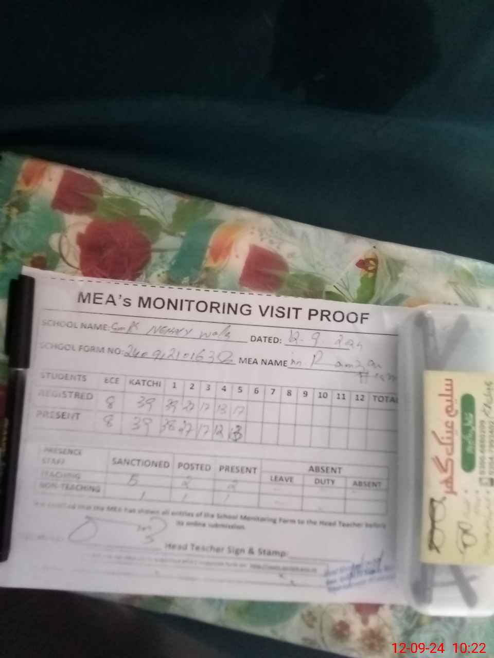 | Attendance Register | Head Teacher | MEA with School | Visit Proof |