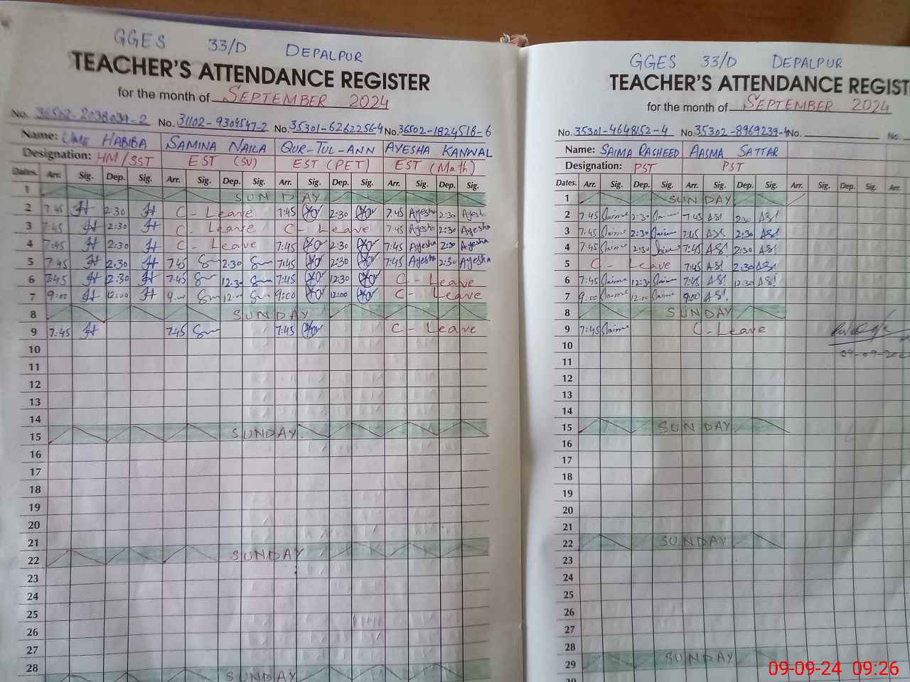 | CNIC | Full Name | Designation | R/C | Absence During Last Calender Month |