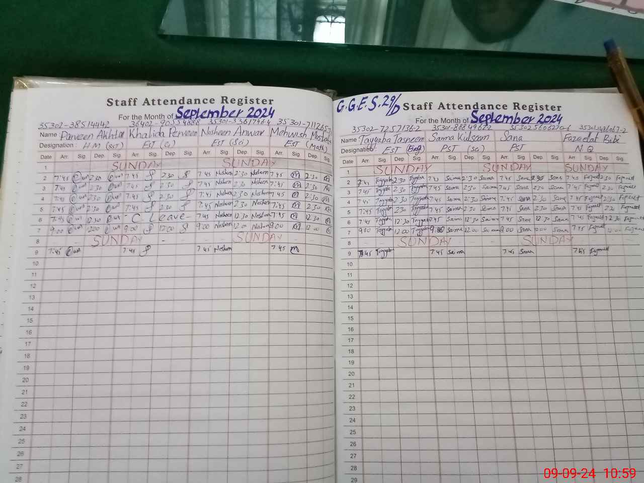 | CNIC | Full Name | Designation | R/C | Absence During Last Calender Month |
