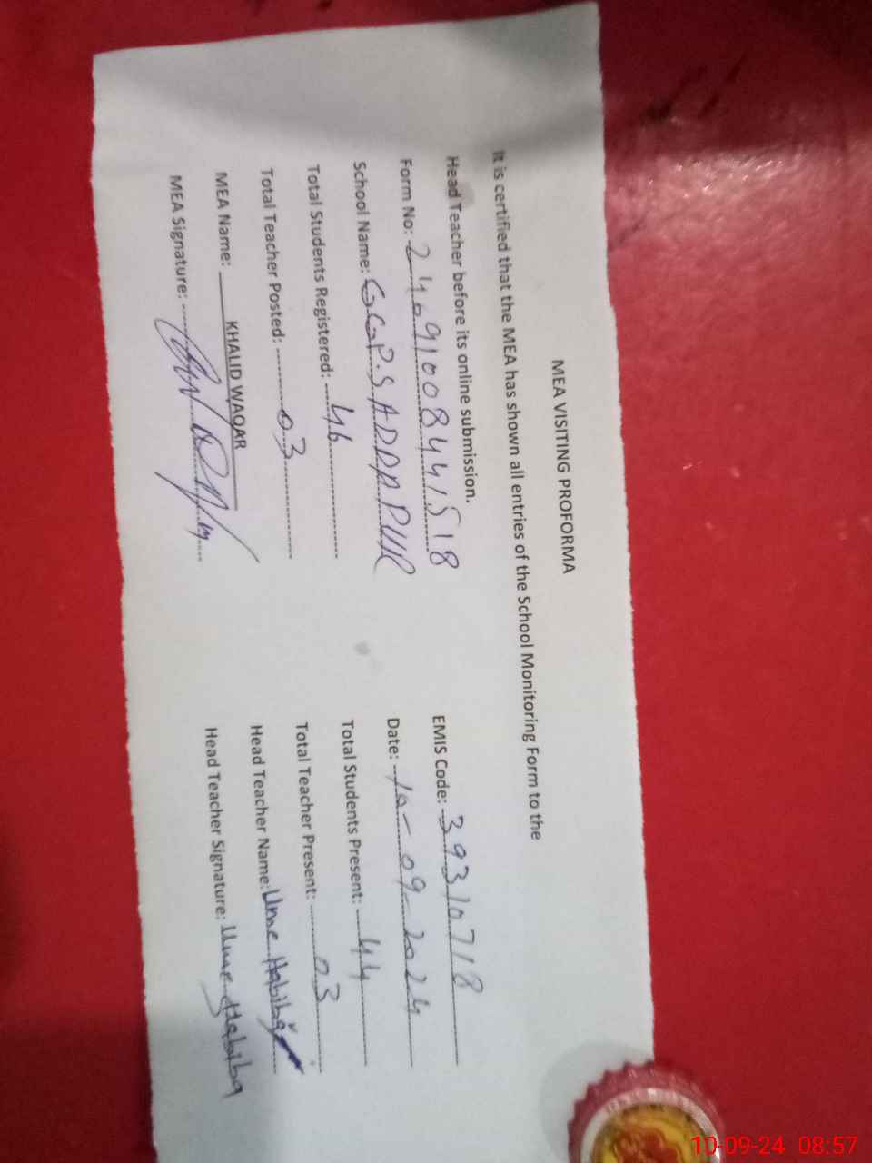 | Certified that this School was Inspected by the Undersigned MEA/DMO Today and the Information Stated Above is as Per Record. | |||||