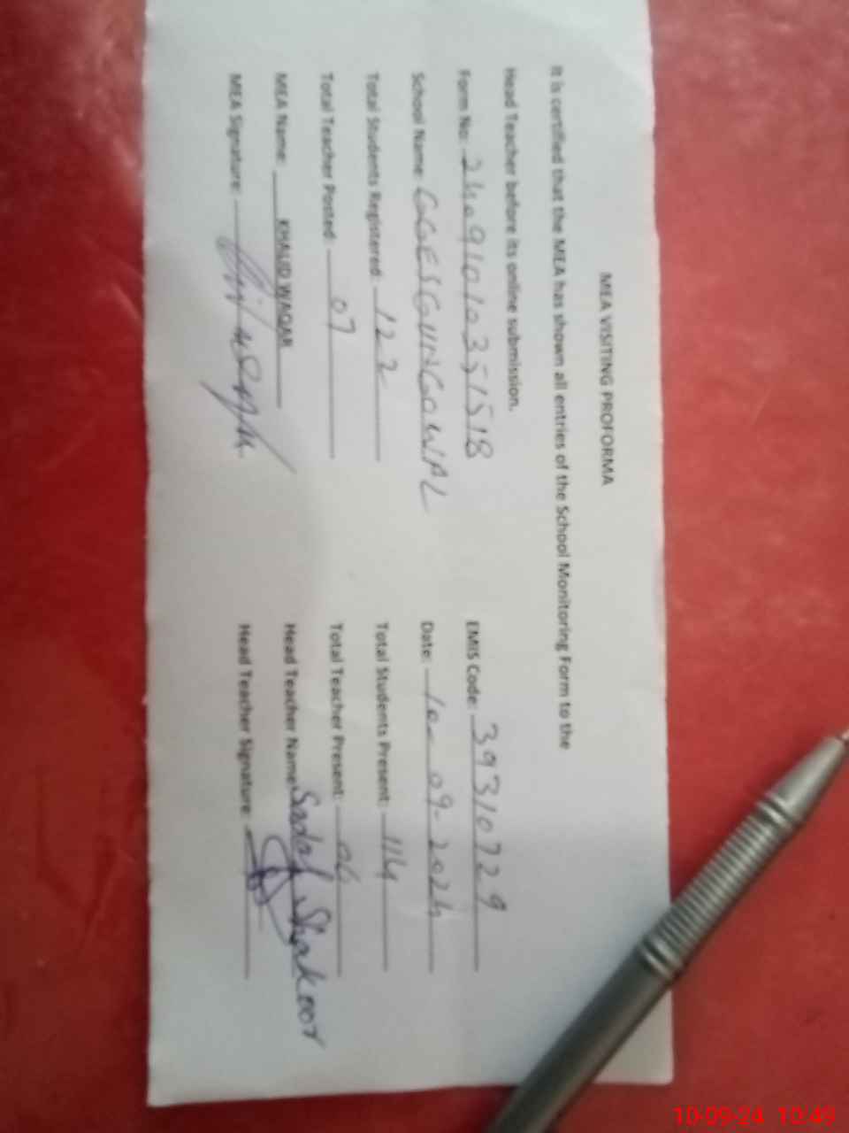 | Certified that this School was Inspected by the Undersigned MEA/DMO Today and the Information Stated Above is as Per Record. | |||||