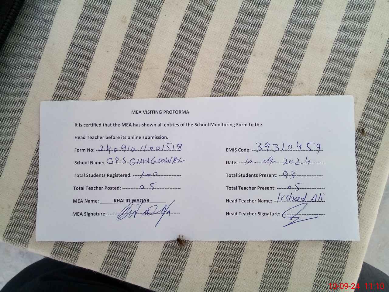 | EMIS Code: 39310459 | Name of School: GPS GUNGOO WAL | |||