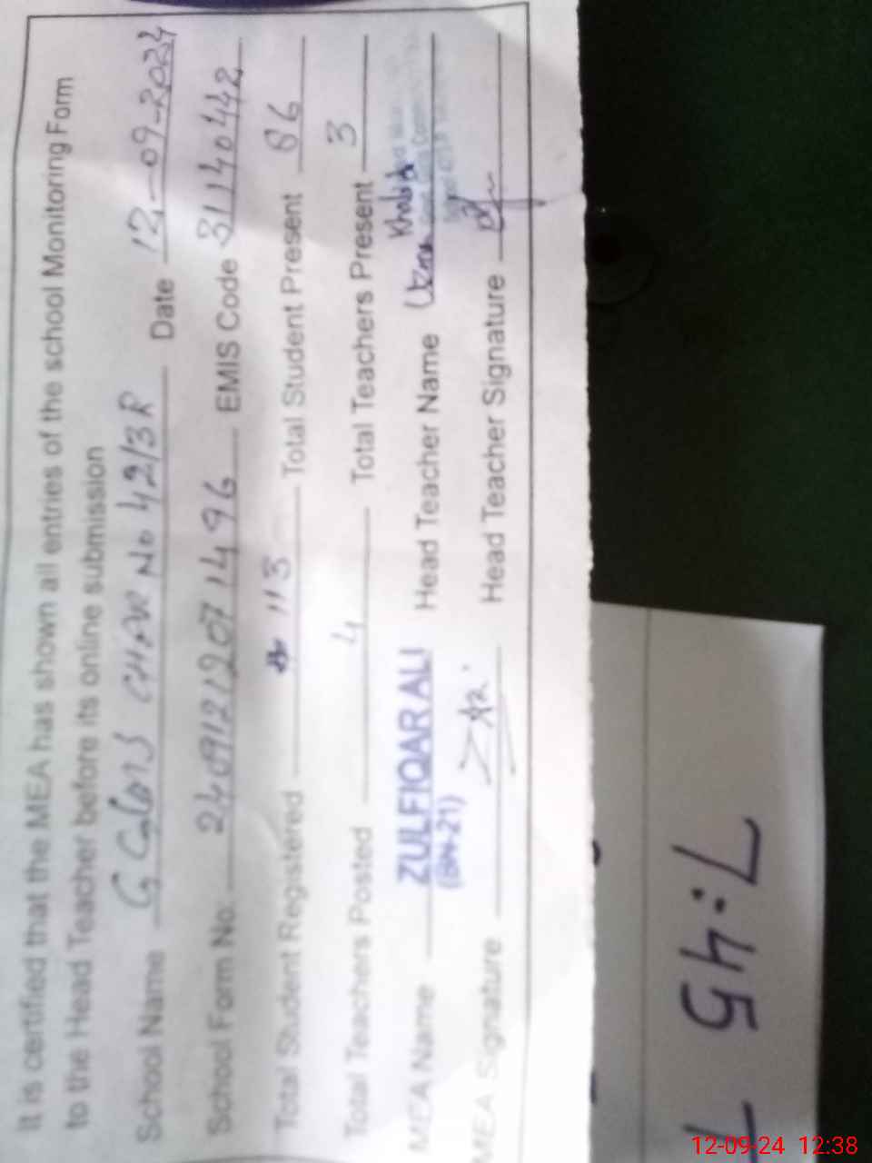 | Name: UZ**** KH**** Designation: (School Headmaster's/Headmistress's) Pst Phone/Cell Number: 03**** |