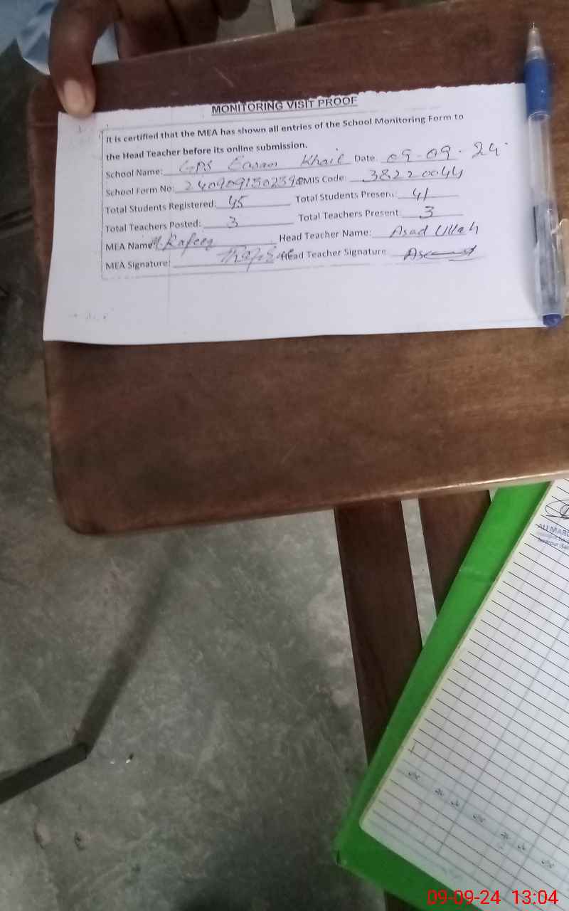 | EMIS Code: 38220044 | Name of School: GPS EASAN KHAIL | |||