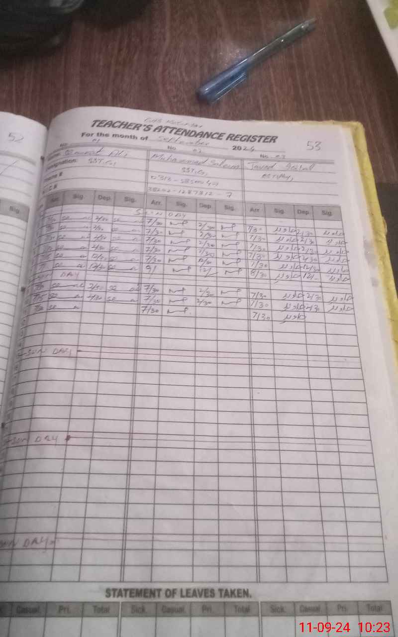 | Name: Sh**** Al**** Designation: (School Headmaster's/Headmistress's) SST G Phone/Cell Number: 03**** |
