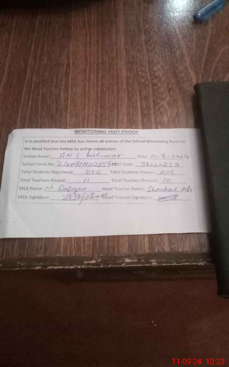 | EMIS Code: 38220253 | Name of School: GHS KATIMAR | |||