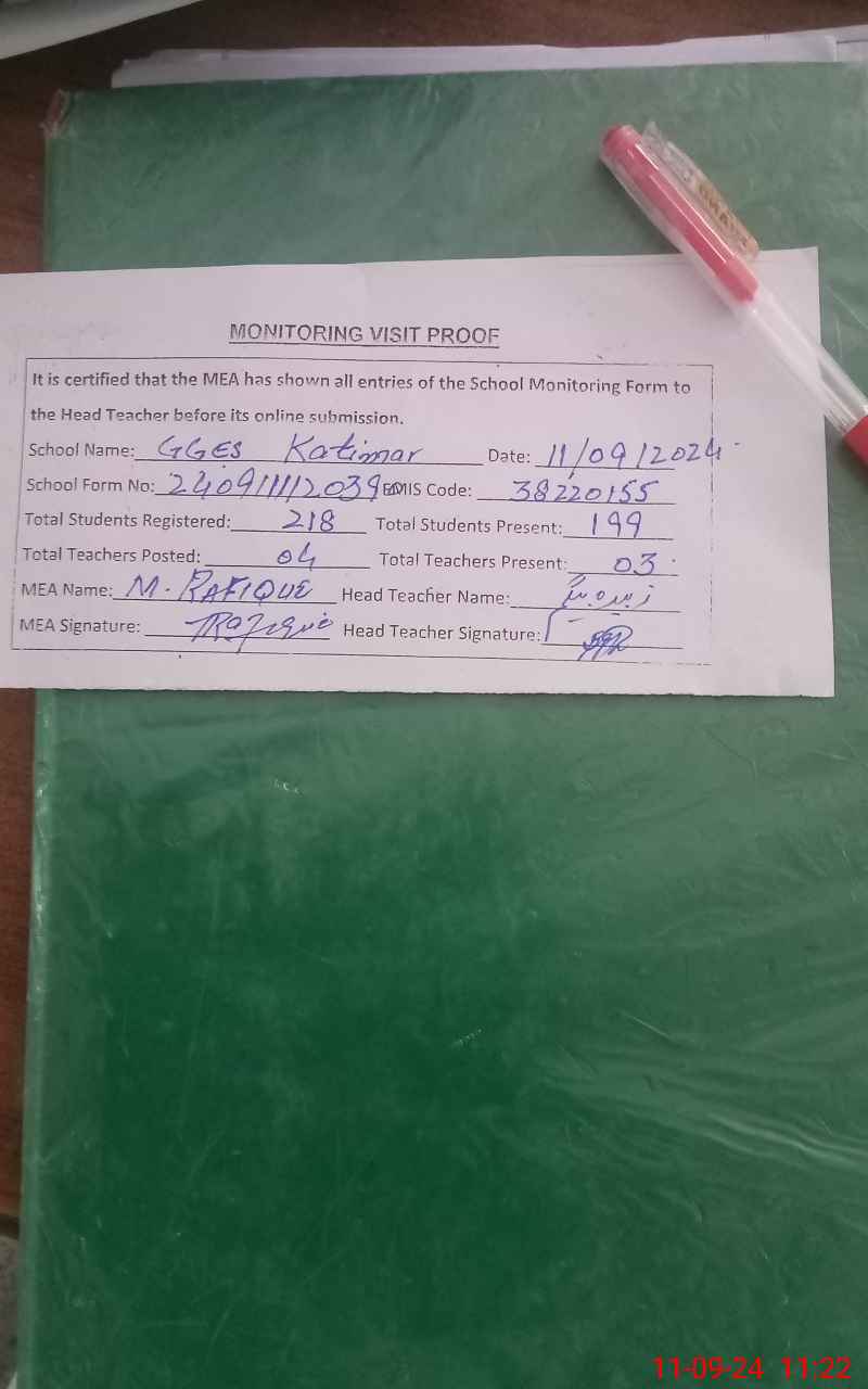 | EMIS Code: 38220155 | Name of School: GGES KATIMAR | |||