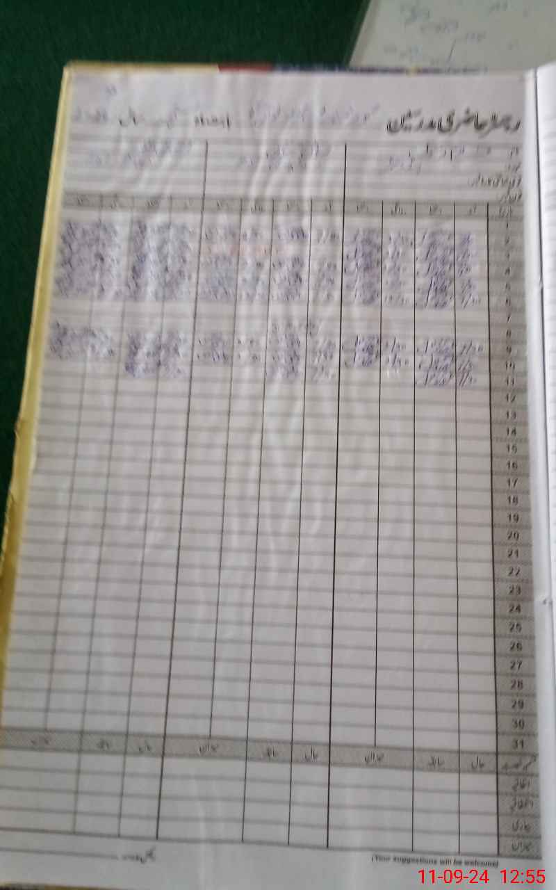 | CNIC | Full Name | Designation | R/C | Absence During Last Calender Month |