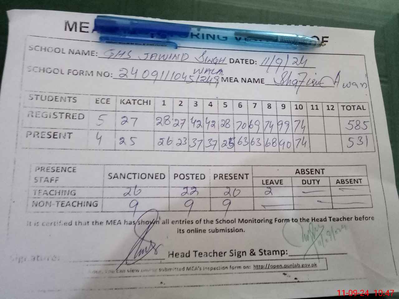 | EMIS Code: 36410013 | Name of School: GHS JAWIND SINGH WALA, KABIRWALA | |||